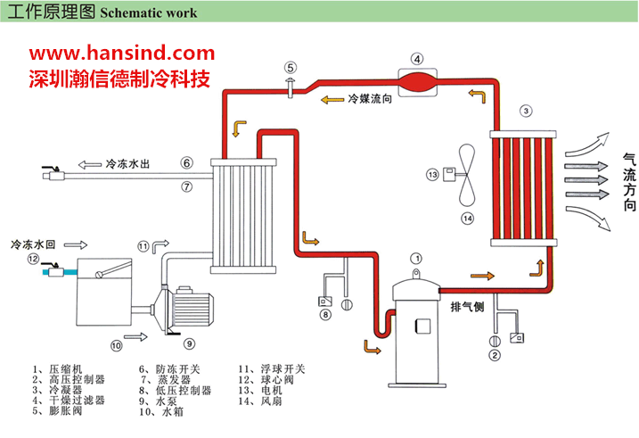 三、風冷式冰水機的工作原理與工作原理圖,約克冰水機原理,瀚信德為你提供高清大圖,并提供最專業(yè),簡潔實用,通俗易懂的工作原理分析!